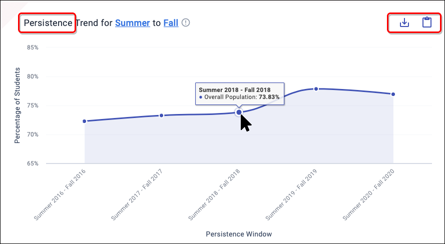 Review historical persistence trends term-to-term — Select either term name to update results in the persistence window.