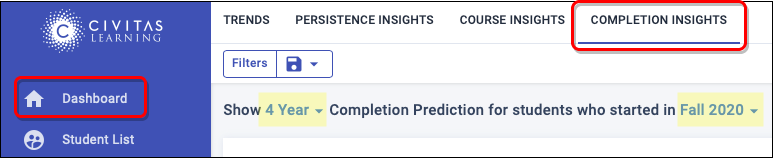 These completion predictions are built from your institution’s data and reflect the unique student experience on your campus, using the same data-modeling and machine-learning platform that power your persistence predictions. With these new completion predictions and insights, you gain a comprehensive view of how your students are tracking towards completion as well as strategic opportunities to act on now.